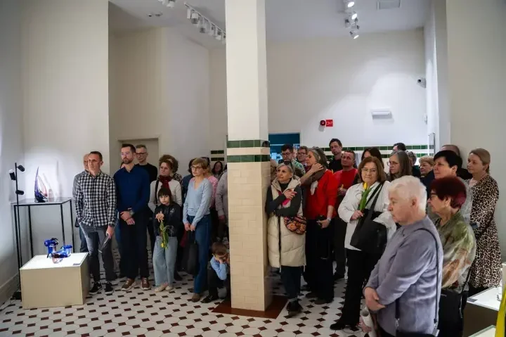 Wieczór skupił się na szkle artystycznym – prezentowane obiekty były osią wydarzenia, ale równie ważna była atmosfera rozmowy i uznania dla pracy autora. Wspólny czas wypełniały krótkie przemówienia, gratulacje i spontaniczne komentarze oglądających, co podkreśliło przestrzeń spotkania jako bardziej kameralną niż formalną.